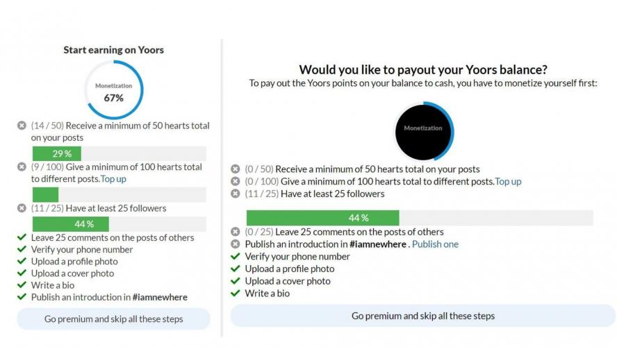 Seems like there's an issue with this : On the left corner I'm 67% away from completing the monetization, and on the right corner I'm 44% away from completing it. So this could be a bug or whatever. . I don't know if I'm alone or if some people have the same remark.