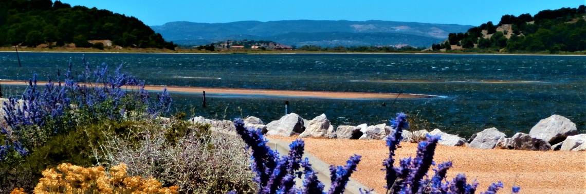 Er waait nog steeds een stevige wind, maar het is onbewolkt. De thermometer klimt naar 29 graden, maar door de wind is het goed te doen. Vandaag rijden we een uurtje richting Narbonne. Daar heb je het Parc naturel régional de la Narbonnaise en Méditerranée.