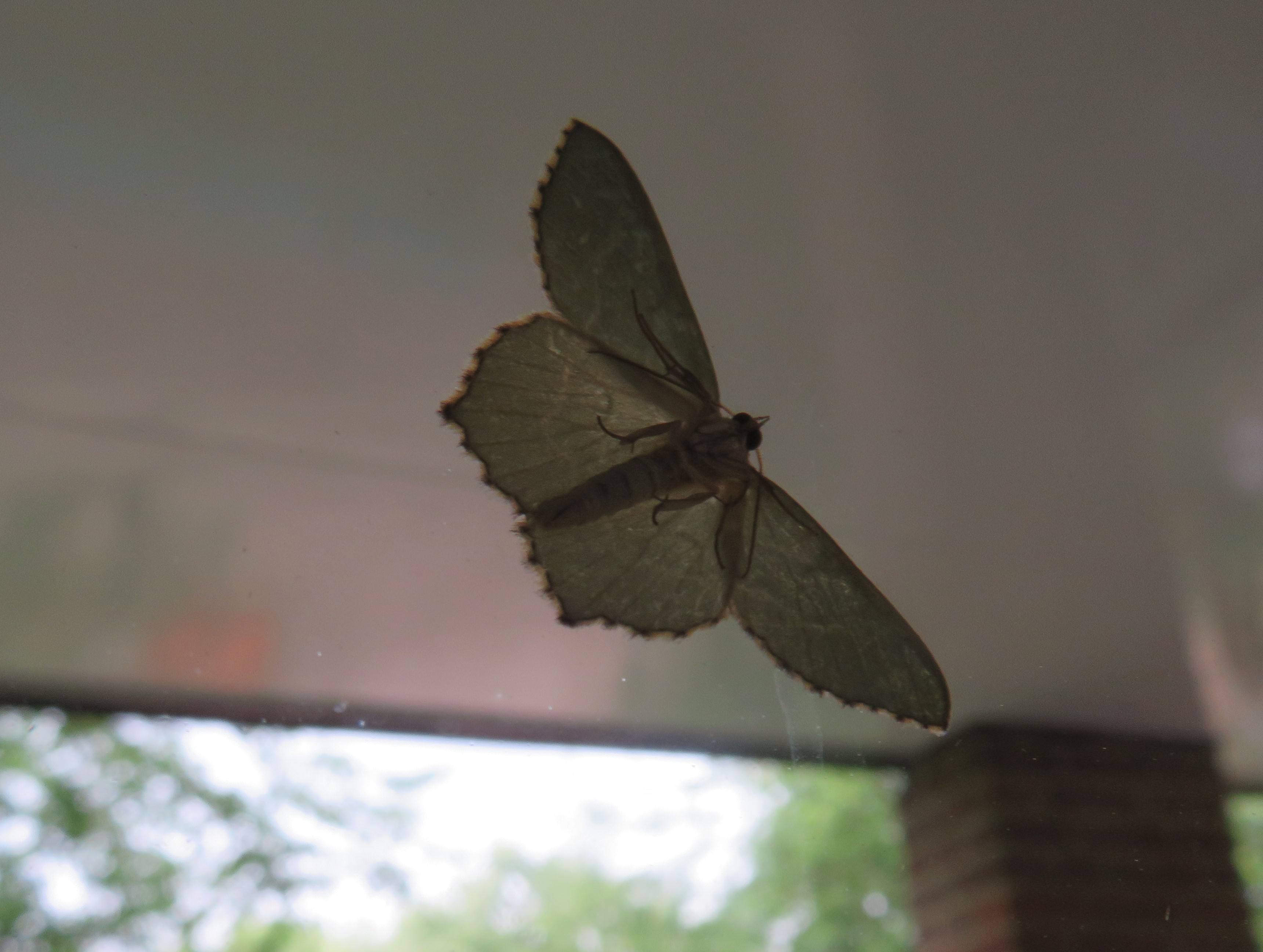 Een kleine #zomervlinder (Hemithea aestivaria) op het raam. Het is een nachtvlinder uit de familie van de spanners en wordt ook wel kleine zomermeter genoemd.